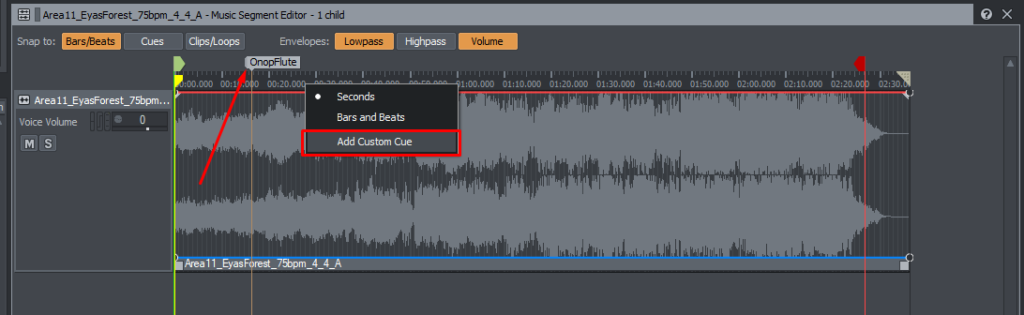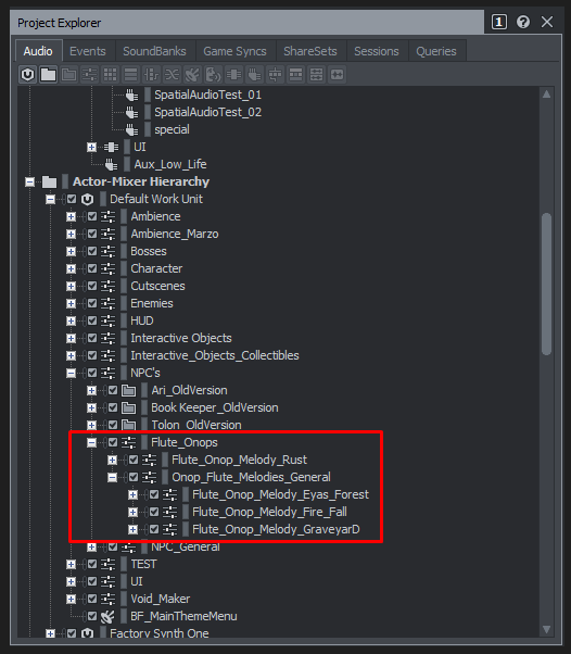 As it can be seen in the image above, the music segments have these markers on them that will indicate Unreal when to start playing the flutes. These sounds are placed in the Onops location, and have 3d positioning, making it so that you don’t hear the flute layer until you are somewhat close. Some of the musician Onop’s are a little bit out of the way, even hidden, and I found it charming to find them only by searching for that spatialized flute layer.