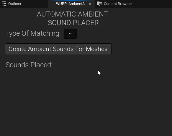 The tool it’s designed to look for Meshes (Skeletal Meshes in this case) in the current level, and create or “spawn” Ambient Sounds for them.