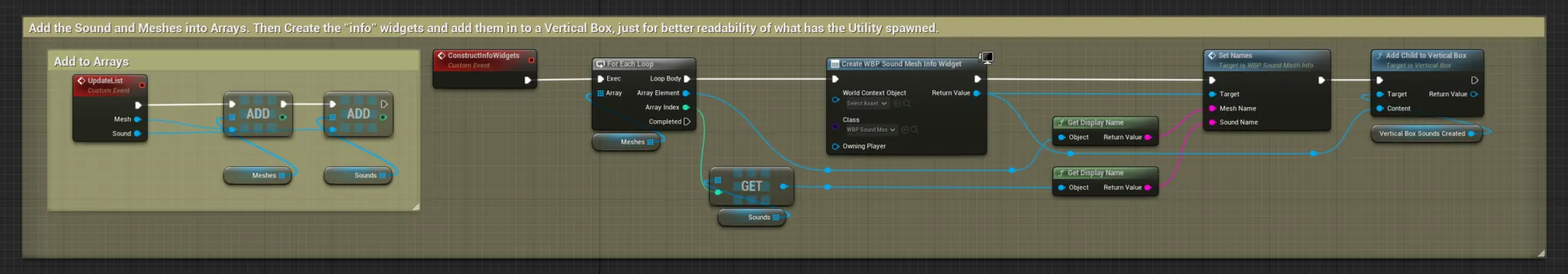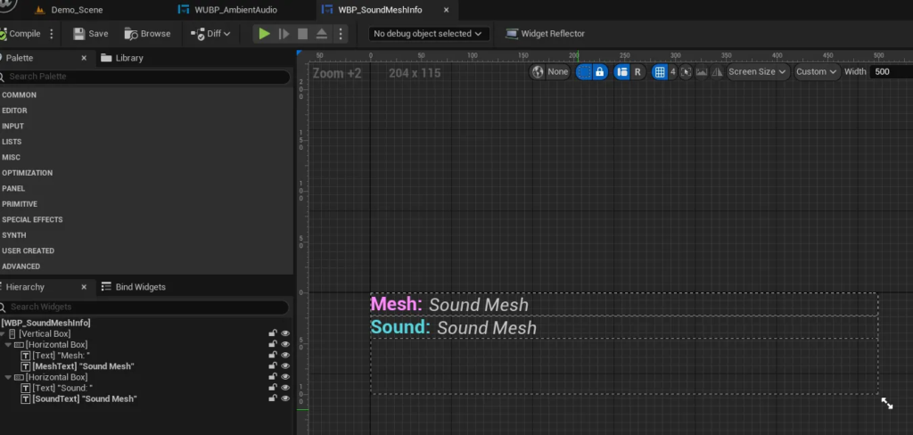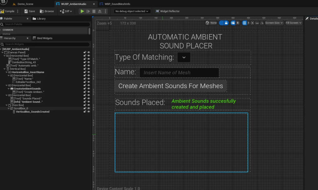 I’m also creating a “Sound Mesh Info Widget”, for each match made, and adding them to a scroll box. It’s a very visual way to communicate the success of the process, and for search for possible match errors.